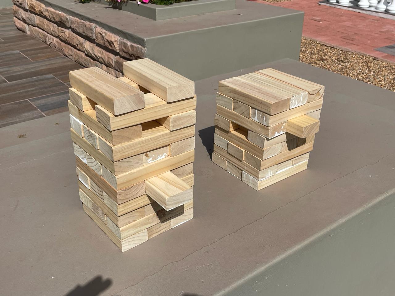 Get ready for towering fun with our giant Jenga blocks at the lodge! Located in a vibrant outdoor space, our oversized Jenga game adds excitement to any gathering.